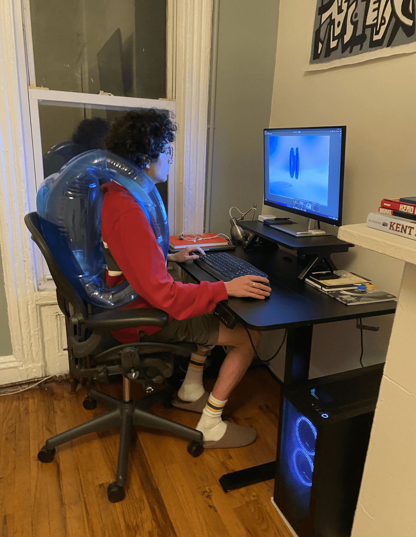 Concept: Welsh’s Air-bag is an inflatable backpack, the first of its kind, and he wanted a campaign that focused on its two states: the deflated, easily storable and the inflated, fully functional. Through observation of Welsh’s brand emphasis on organic shapes and unusual materials, I recreated an exact replica of the Air-bag in 3D.
